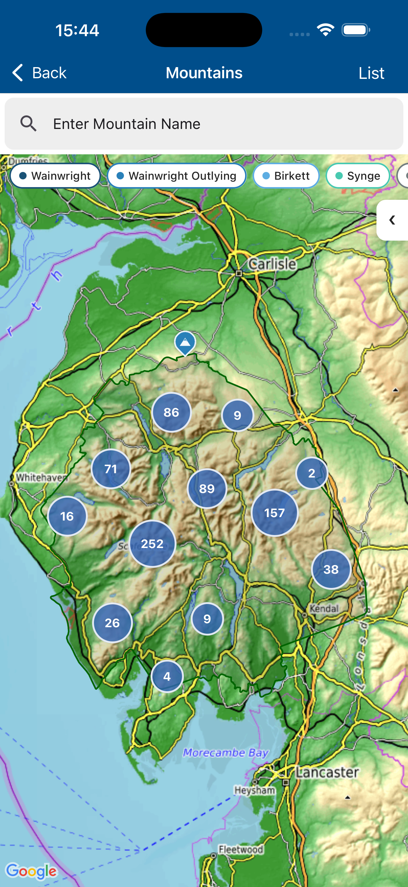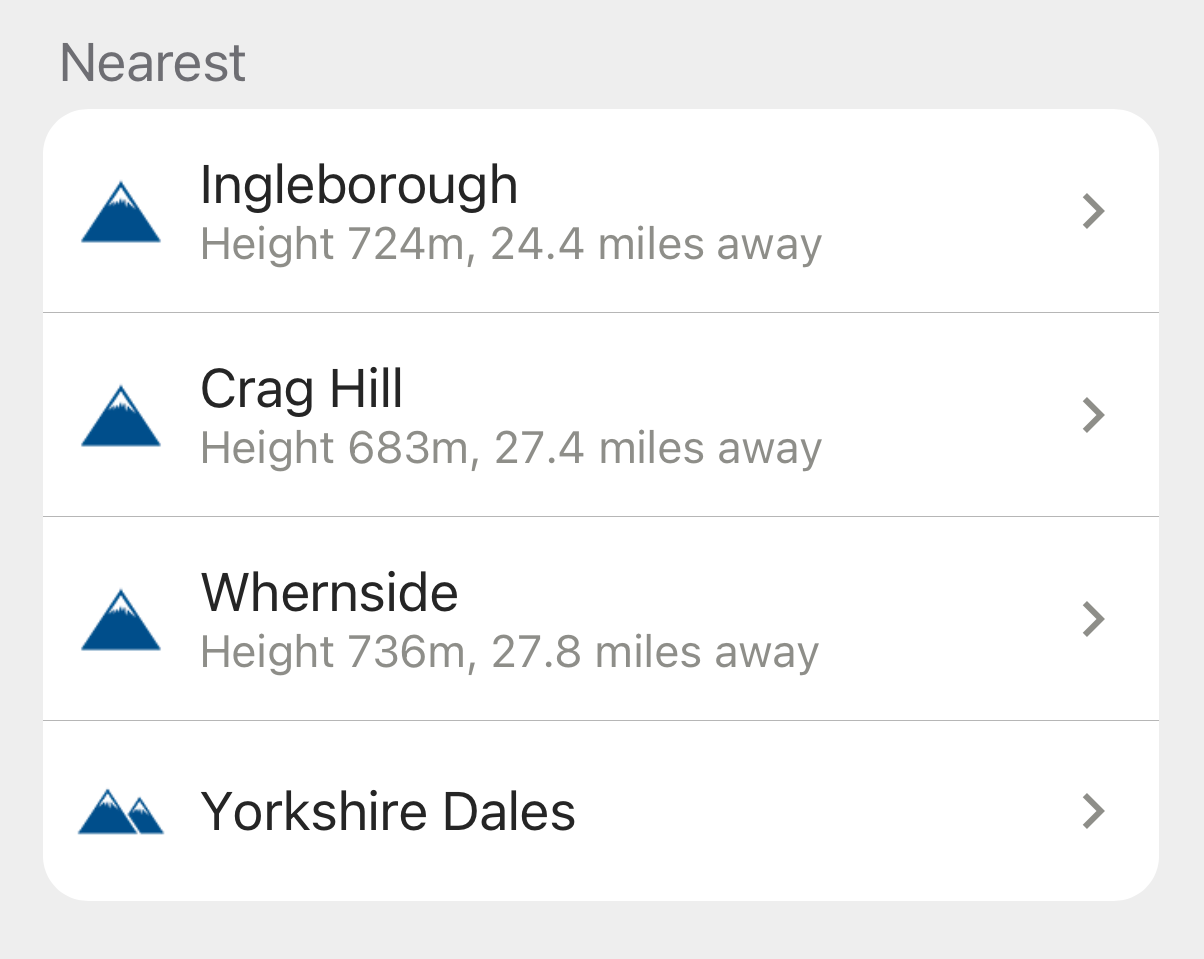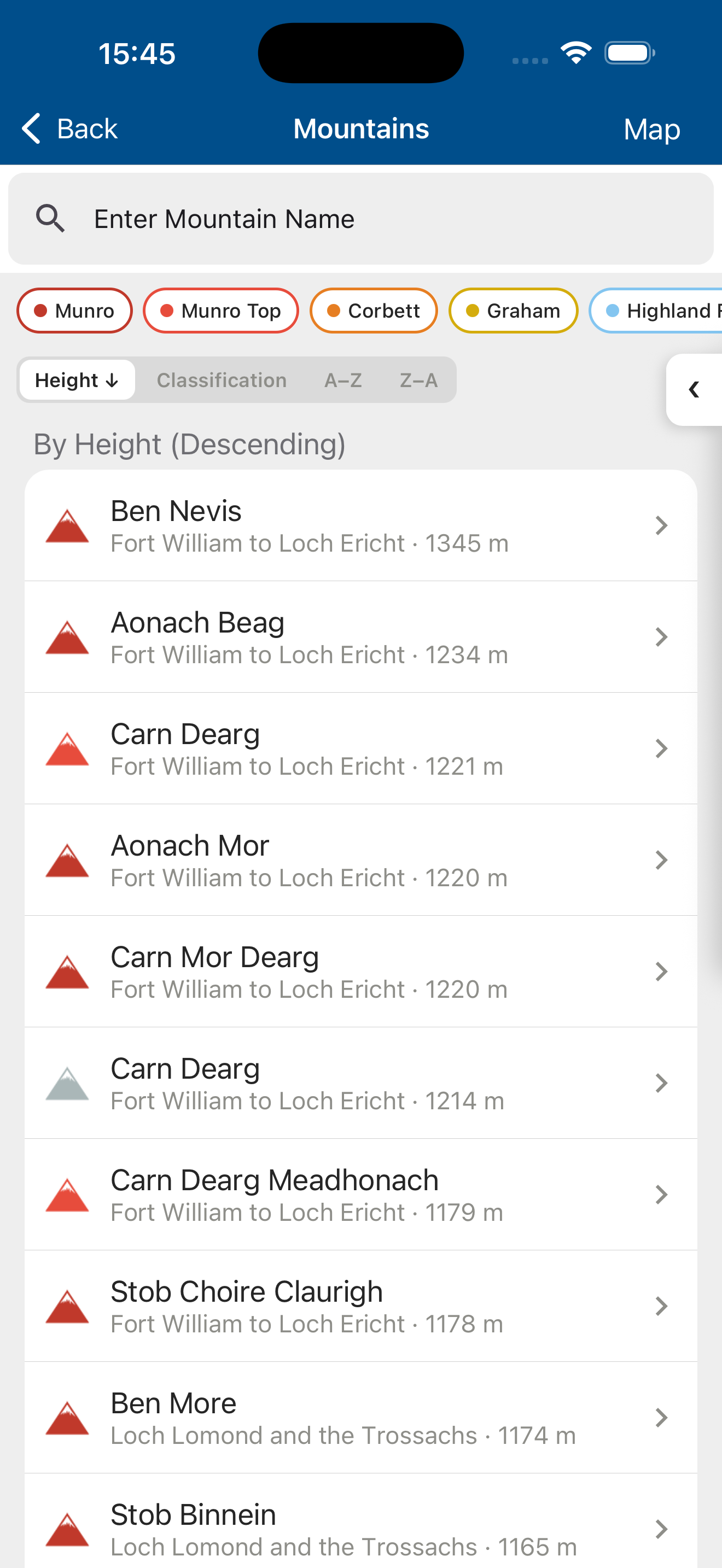 - Each summit displays its hill-bagging classification (Munro, Wainwright, Corbett, Hewitt etc.).